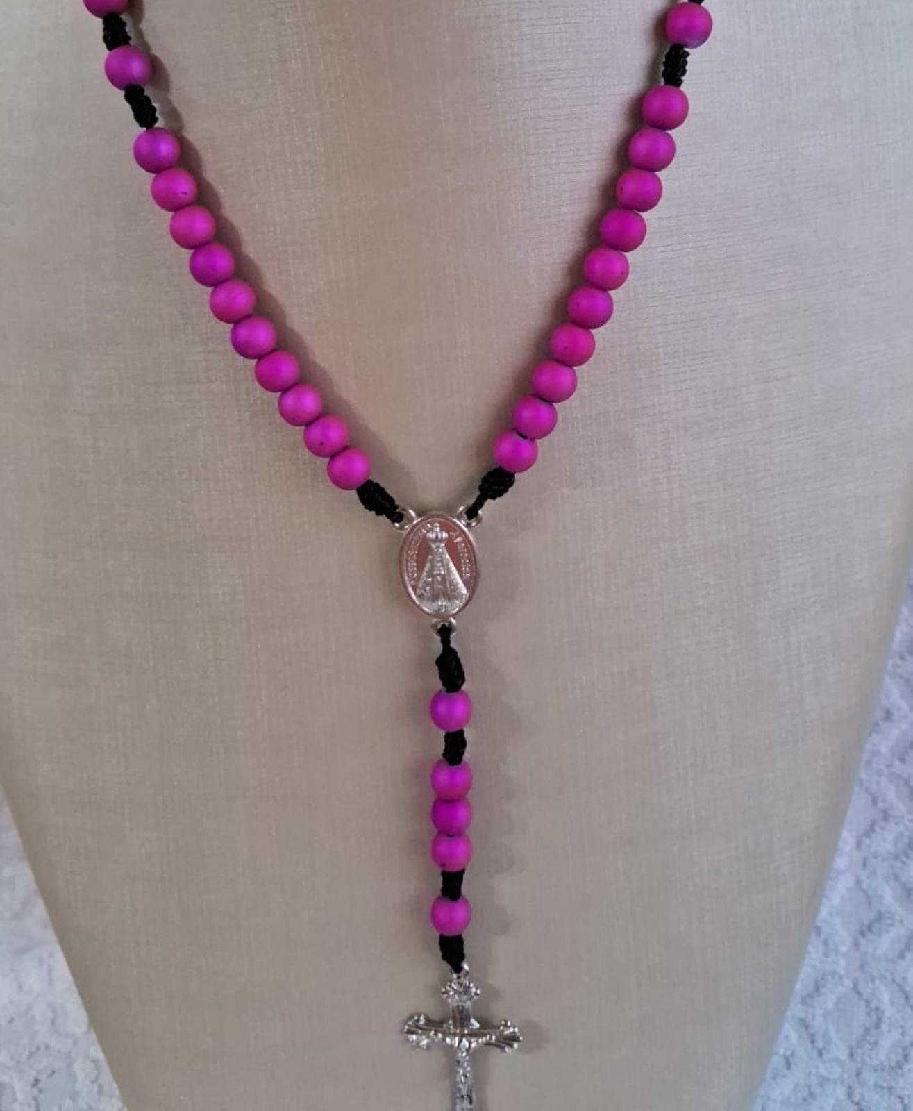Contas em ABS emborrachado com entremeio e cruz em aço