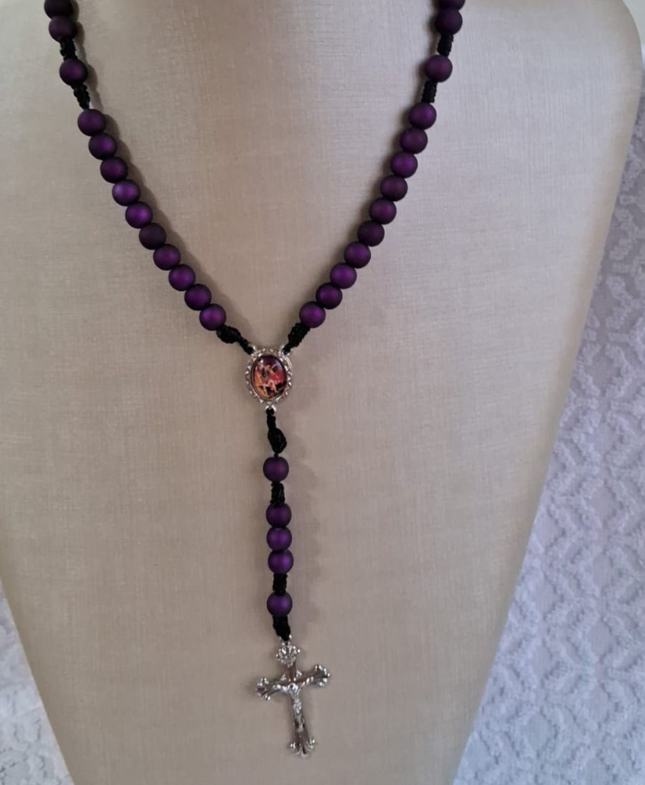 Contas em ABS emborrachado com entremeio e cruz em aço